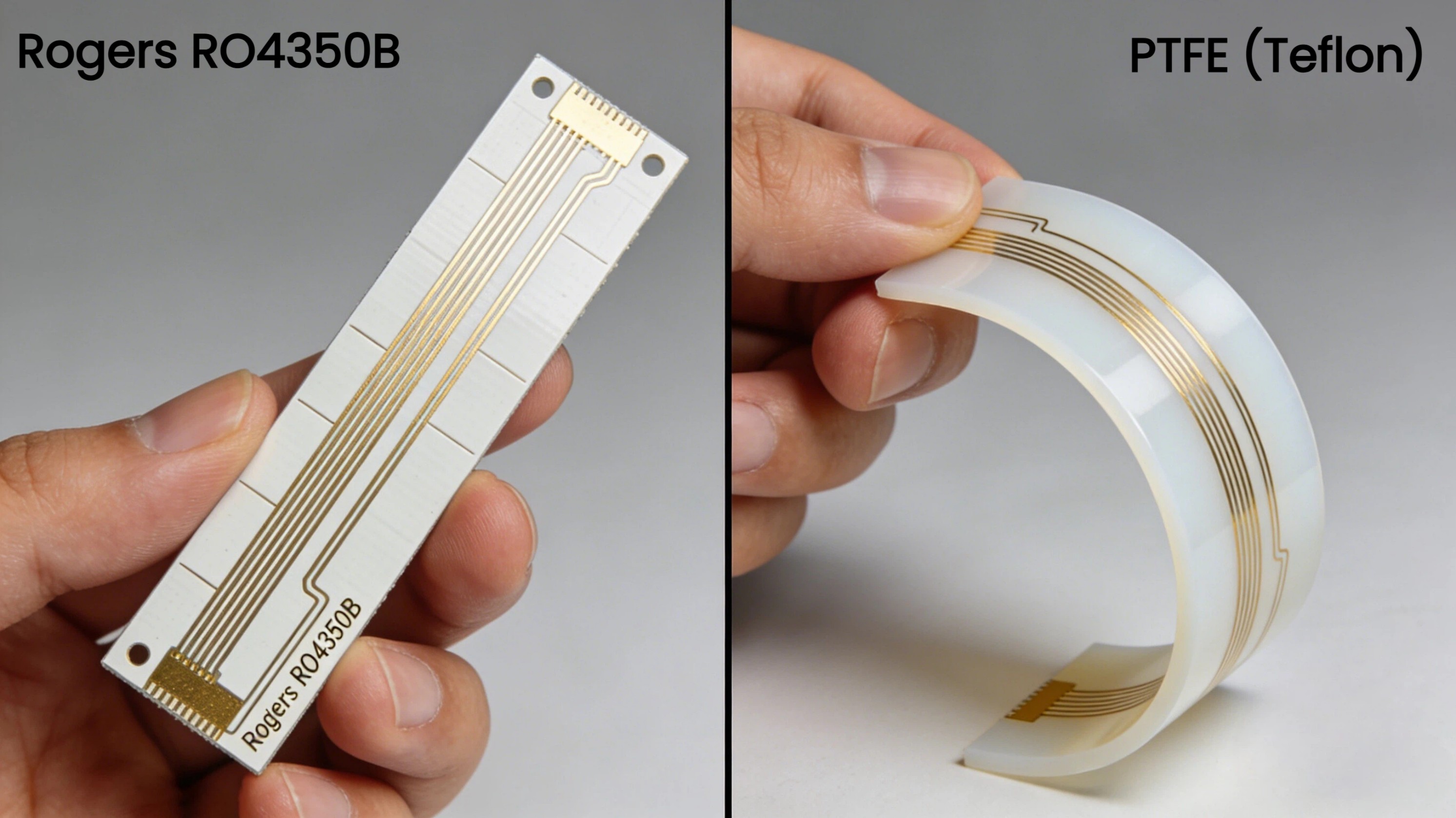 | Rogers RO4350B (Ceramic-Filled Hydrocarbon) | PTFE (Teflon) Based (e.g., Rogers RT Series / Taconic) |