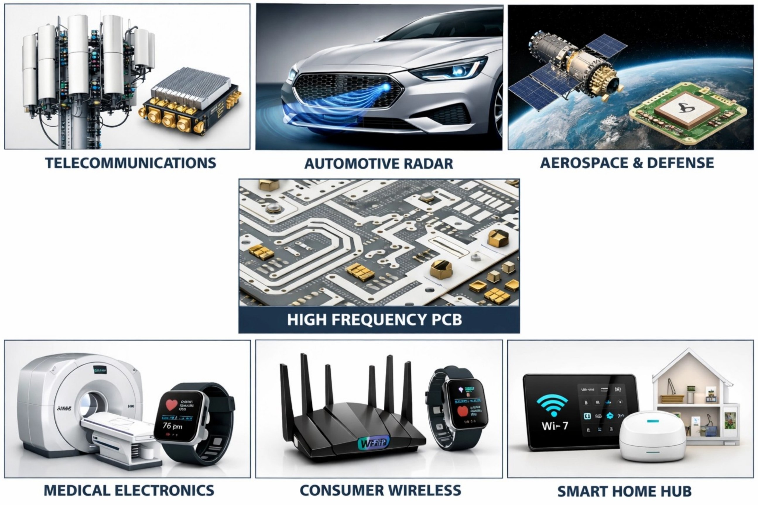 High Frequency PCB, often referred to as RF (Radio Frequency) or Microwave PCB, is a specialized circuit board designed to transmit electromagnetic signals in the frequency range of 500MHz to 100GHz+.